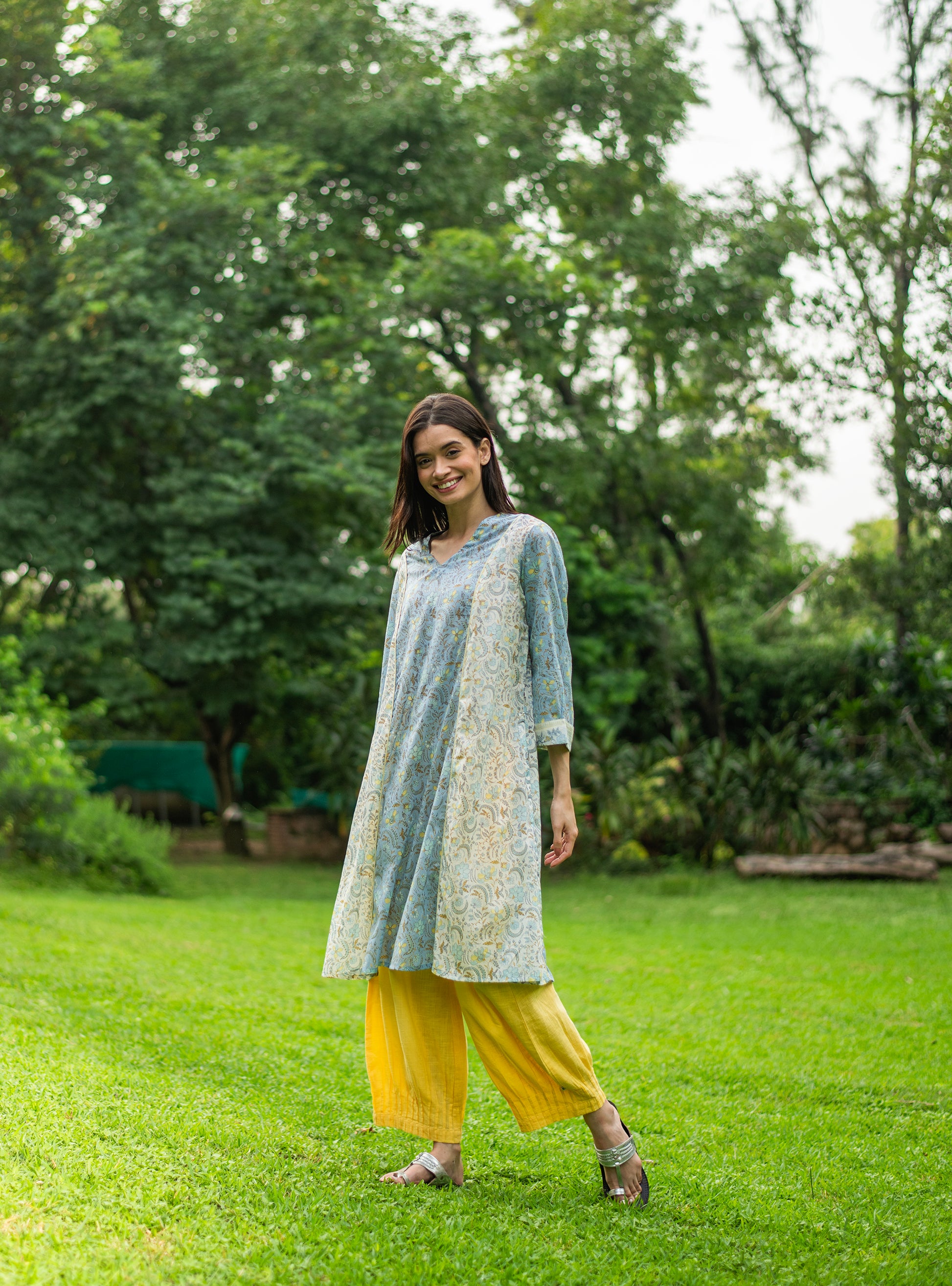 These women's Pinch Cuff Pants in Solid Yolk Slub yellow combine comfort with a tailored look. The distinctive pinch cuff adds a structured finish, while the soft slub fabric offers breathability and subtle texture. Ideal for professional or casual settings, they provide a flattering silhouette without compromising ease of movement. Perfect for elevating everyday style with understated sophistication.
