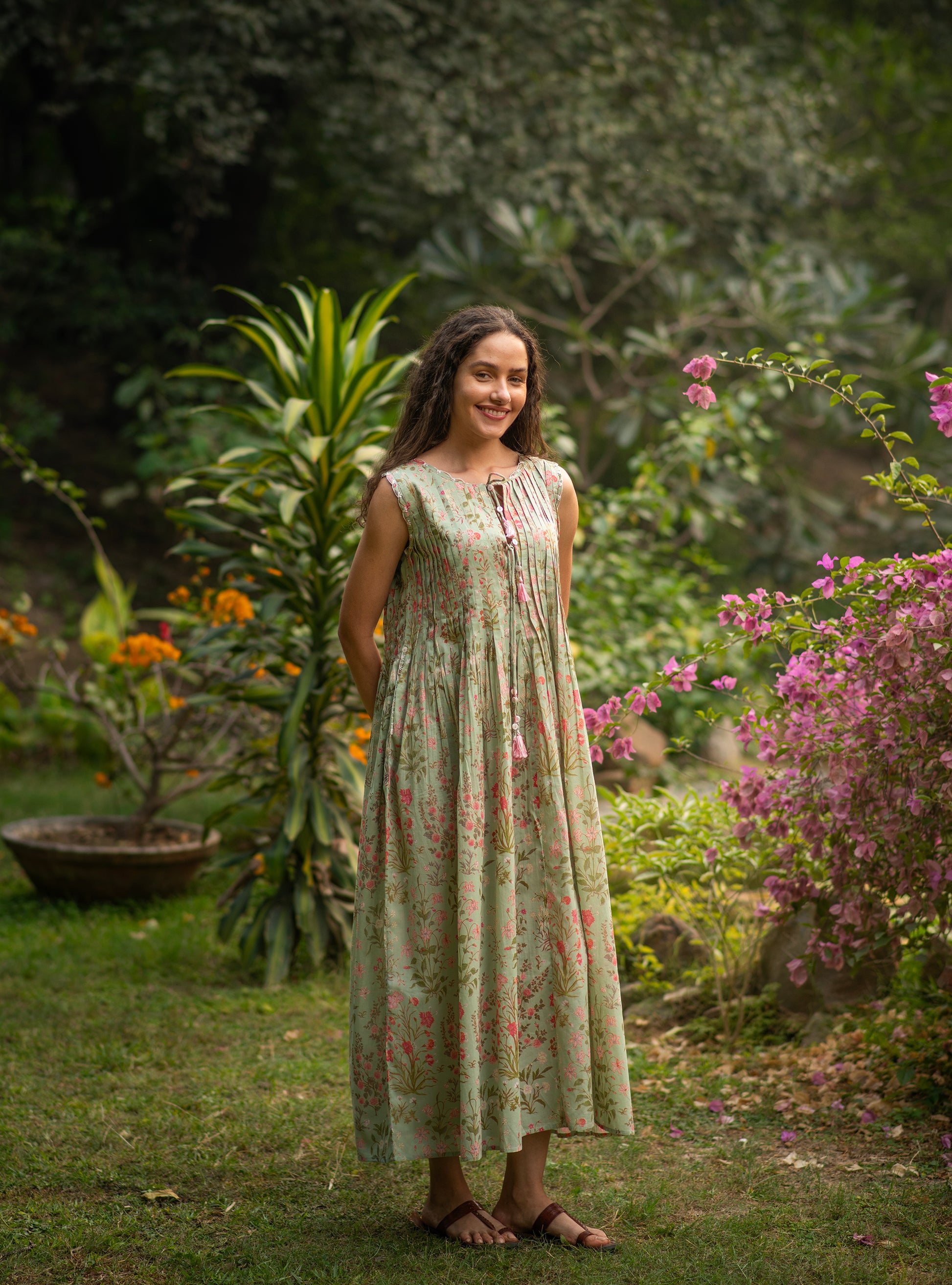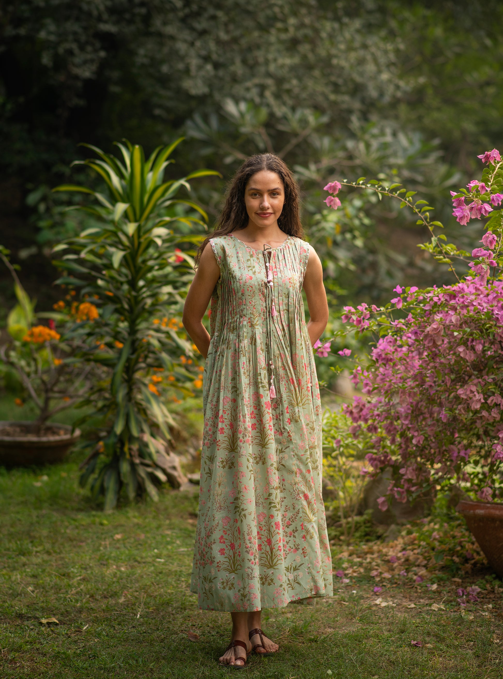 Crafted from lightweight voile, the Ukiyo Dress in Garden Mint delivers effortless elegance for warm-weather dressing. The soft, breathable fabric drapes gracefully while maintaining its shape, making it ideal for layering or wearing solo. Garden Mint's serene hue complements a range of skin tones and pairs seamlessly with neutral or jewel-toned accessories. Perfect for transitional seasons, this piece bridges casual comfort with refined sophistication—a versatile staple for those who value quality construction and understated style.