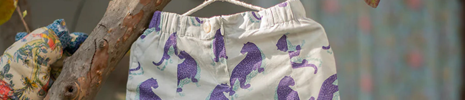 Kids Square Pocket Shorts : Leopard Beige Voile