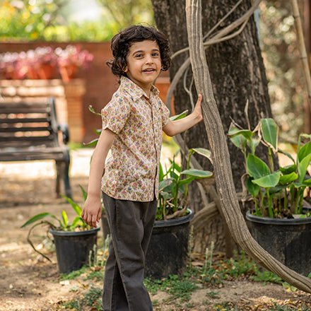 Kids Angad Half Sleeves Shirt: Eden Beige