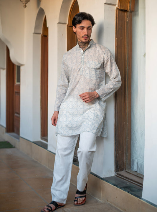 Mens Kurta Long : Alaknanda Emerald Chanderi
