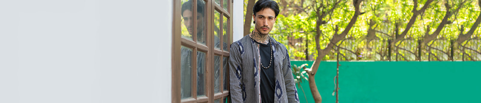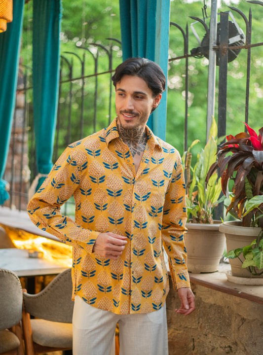 Xavier Shirt Full Sleeves : Ajrakh Ubud Indigo Voile