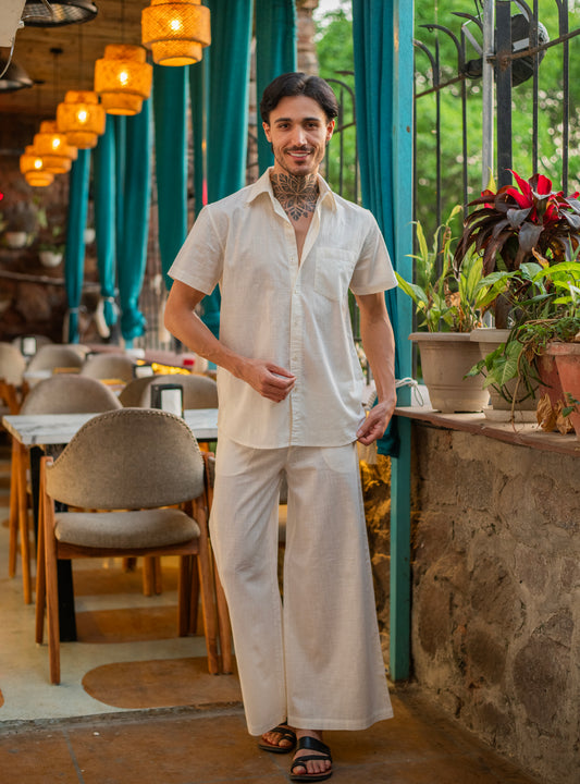Men's Anthony Shirt Half Sleeves : Ajrakh Veena Indigo Voile