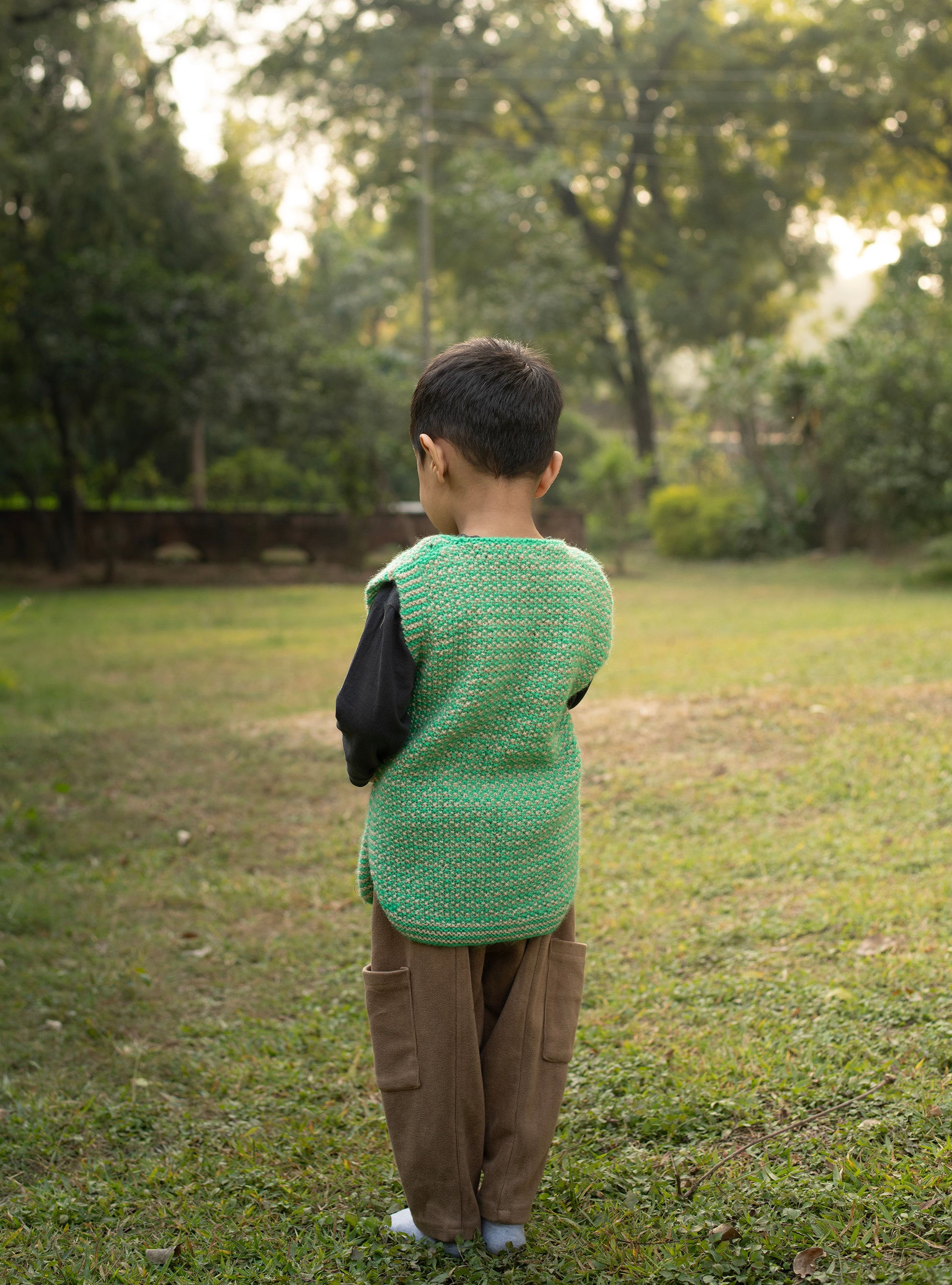 Layered styling meets everyday comfort in this knitted sweater tabard, designed for active children. The assorted colorways offer versatile pairing options with existing wardrobes, while the tabard silhouette provides easy layering over long-sleeve tees and shirts. Crafted from quality knit fabric, it delivers warmth without bulk—ideal for transitional seasons and indoor play. A practical addition to any child's essentials collection.
