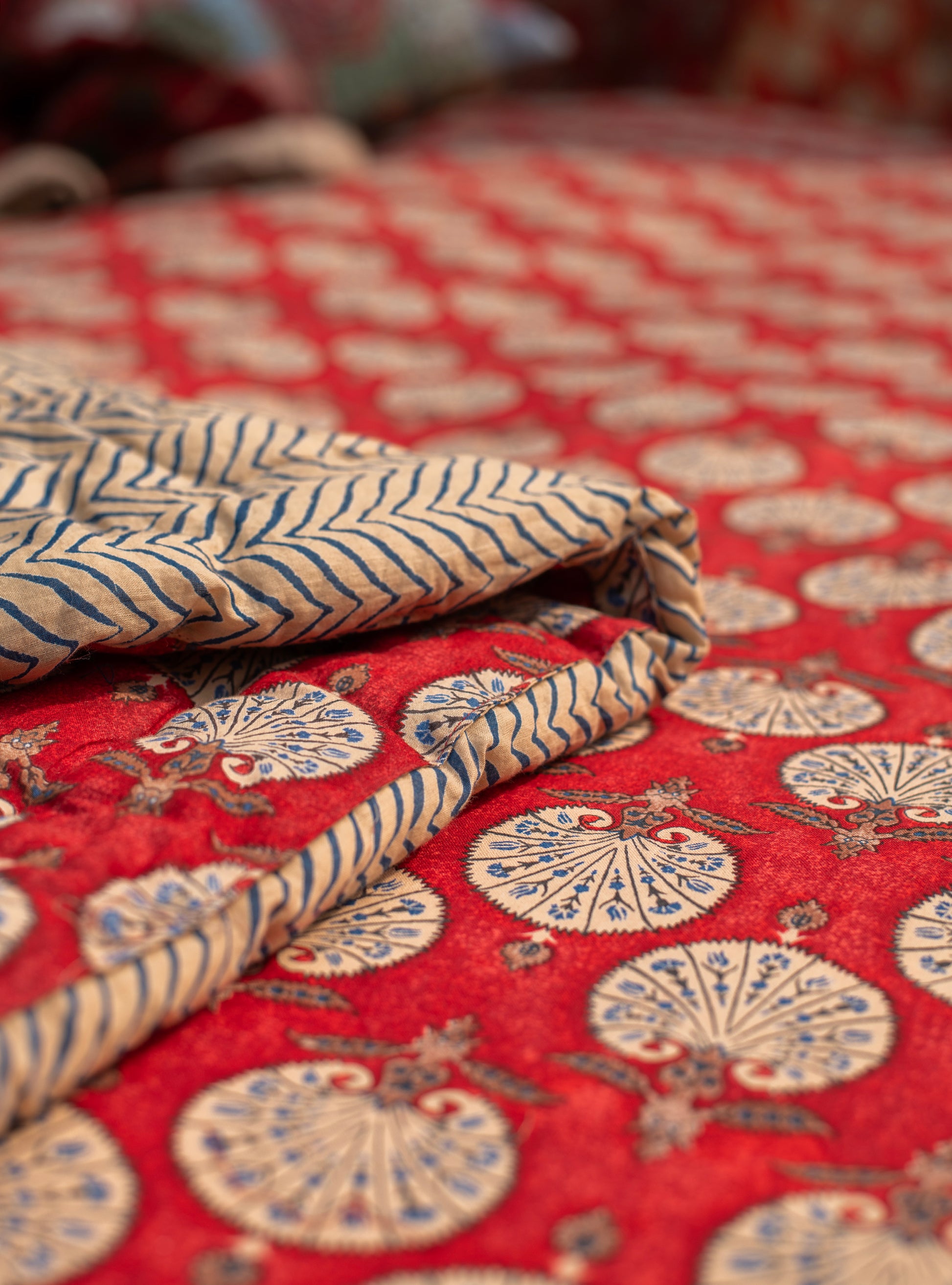 Crafted from premium voile fabric, this printed quilt showcases an exquisite Shahi Red design that brings regal elegance to any bedroom. The lightweight voile construction offers breathable comfort ideal for warm climates, while the intricate print pattern adds sophisticated visual interest. Perfect for layering or standalone use, this quilt combines traditional aesthetic appeal with practical functionality. The durable fabric ensures lasting color vibrancy through regular washing, making it a versatile addition to your home décor collection.