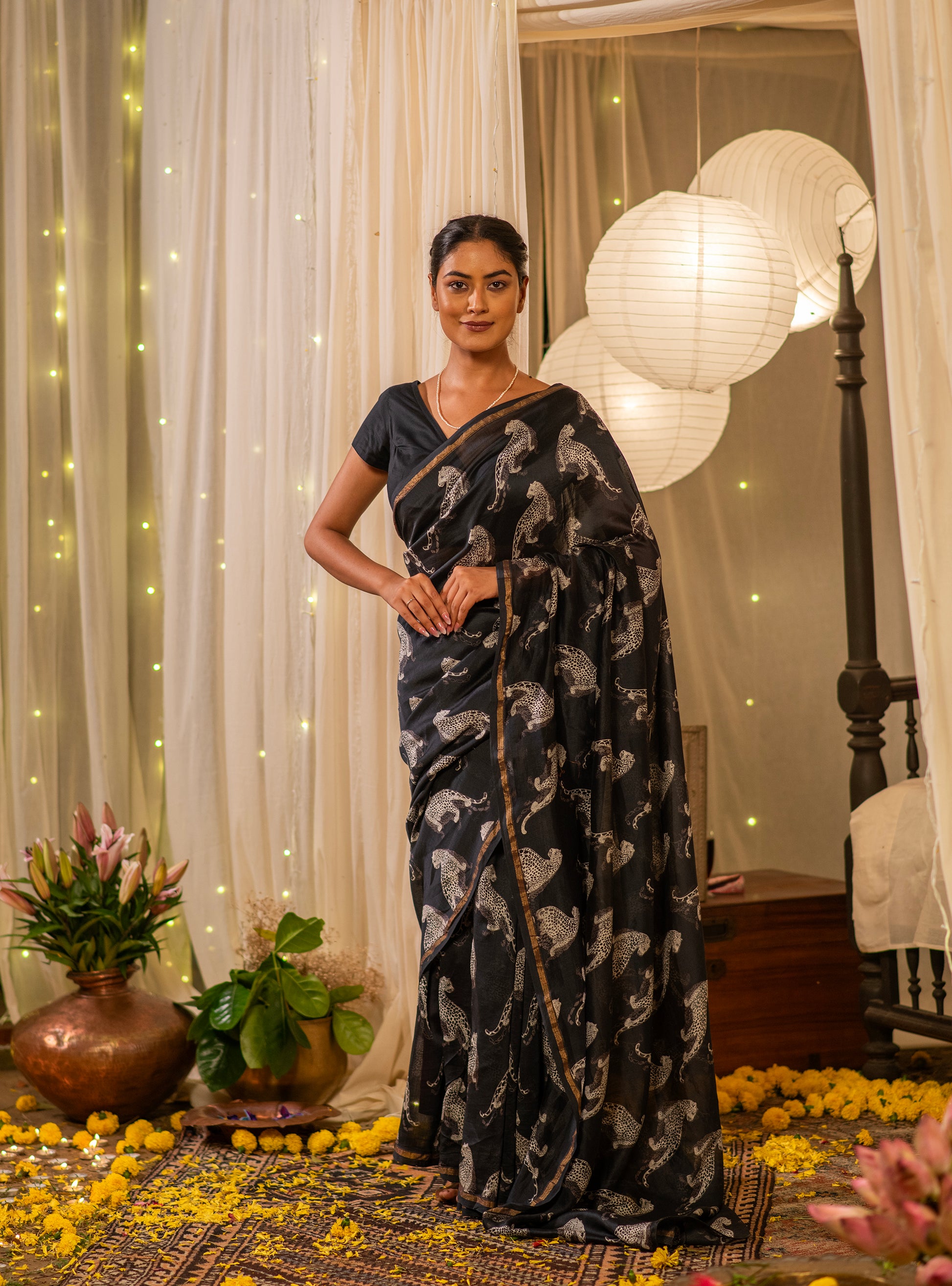 Elevate your ethnic wardrobe with this striking Leopard Saree in luxurious Silver Chanderi fabric. The timeless leopard print brings contemporary edge to traditional draping, while Chanderi's lightweight weave ensures effortless comfort throughout the day. Known for its subtle sheen and breathable quality, this fabric is ideal for both festive occasions and everyday elegance. The silver tone complements all skin tones, making it a versatile addition to your collection. Perfect for those who appreciate bold patterns with refined craftsmanship.