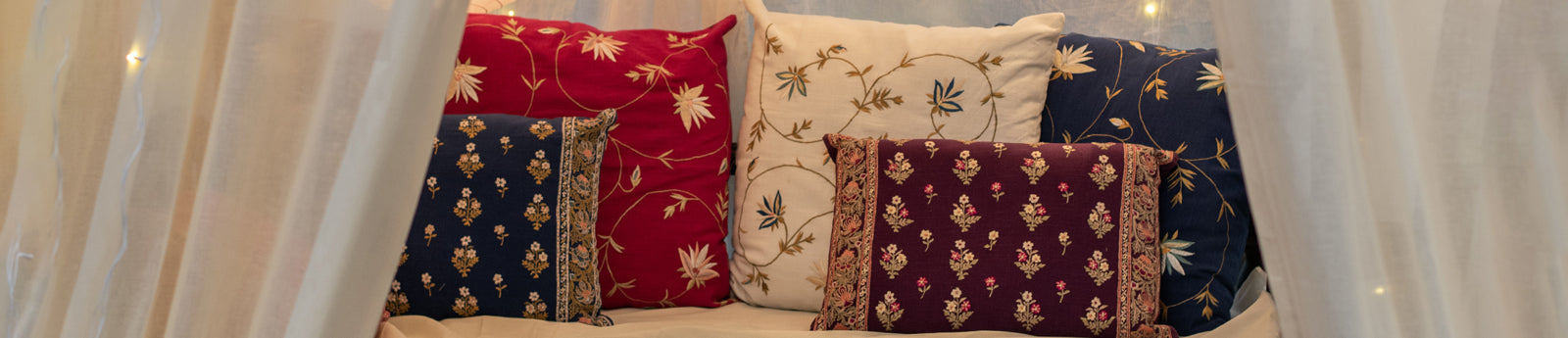Aari Emb Cushion Cover : Samundar Mysore Silk