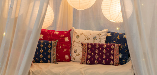 Aari Emb Cushion Cover : Rangeela Mysore Silk