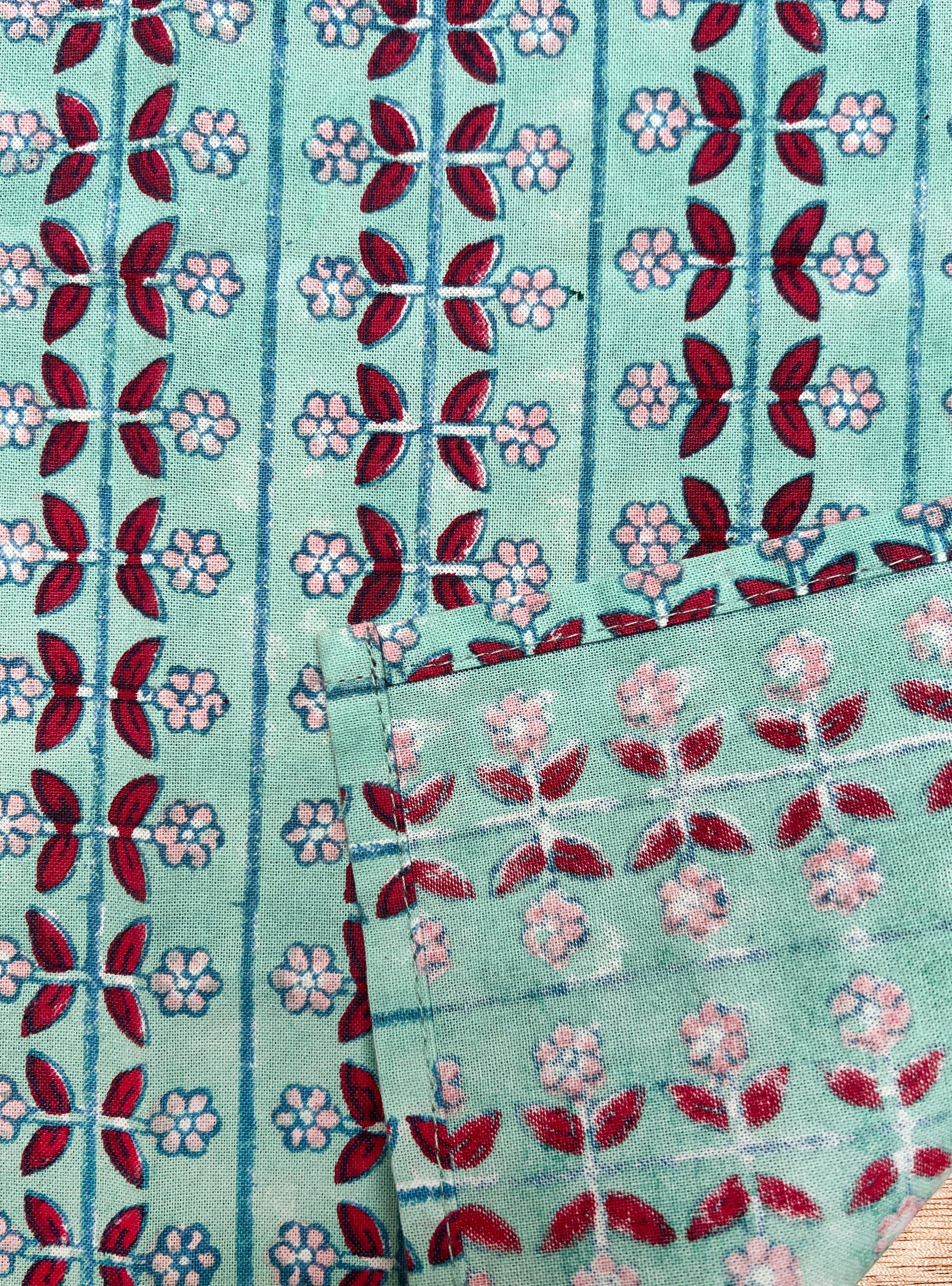 Elevate your table setting with our artisanal Block Printed Napkins, featuring a charming Farm Floral design. Each piece showcases traditional block printing techniques, bringing authentic craftsmanship to your dining experience. The versatile Mix n Match Sheeting pattern allows seamless coordination with various tableware and décor styles, making these napkins ideal for everyday meals or special occasions. Crafted with attention to detail, these napkins combine functionality with aesthetic appeal, adding a touch of rustic elegance to any table. Perfect for those who appreciate handmade quality and timeless design.