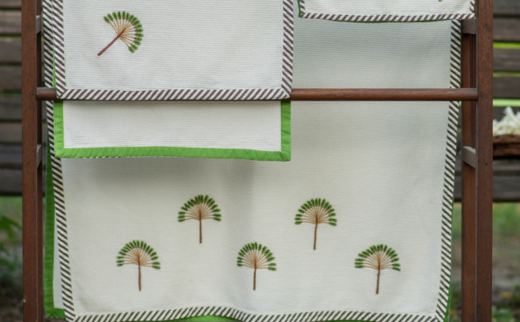 Kerala Hand Towel : Chrysanthemum Ivory Handloom