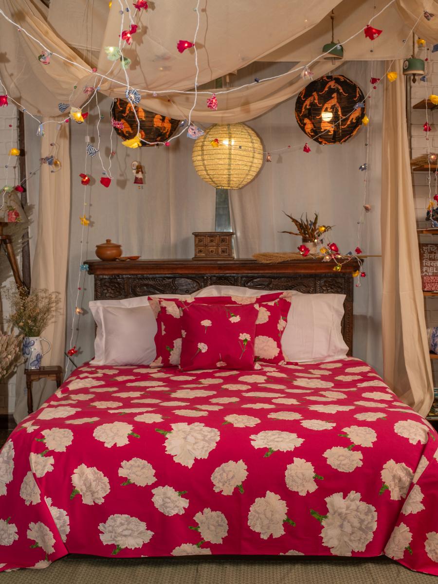 A blend of comfort and aesthetics for your bedroom sanctuary, this cotton sheeting bed cover features a unique print, mirroring the eclectic beauty of nature because of the Eid indoor shoot. Elevate your sleep space with a touch of nature-inspired elegance and the soft embrace of premium cotton.