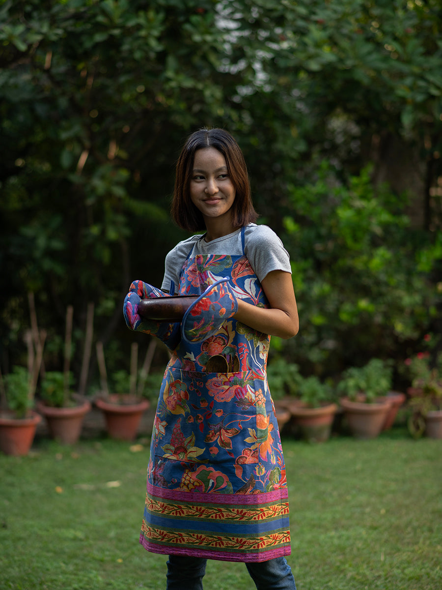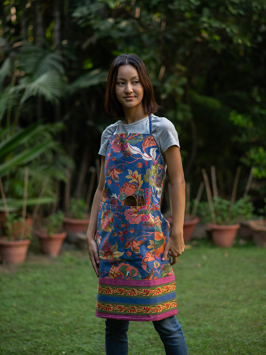 Our cotton canvas apron is where style meets functionality in the heart of your kitchen. This apron features a beautiful floral print, elevating your cooking experience with the perfect blend of comfort, durability, and artistic charm.
