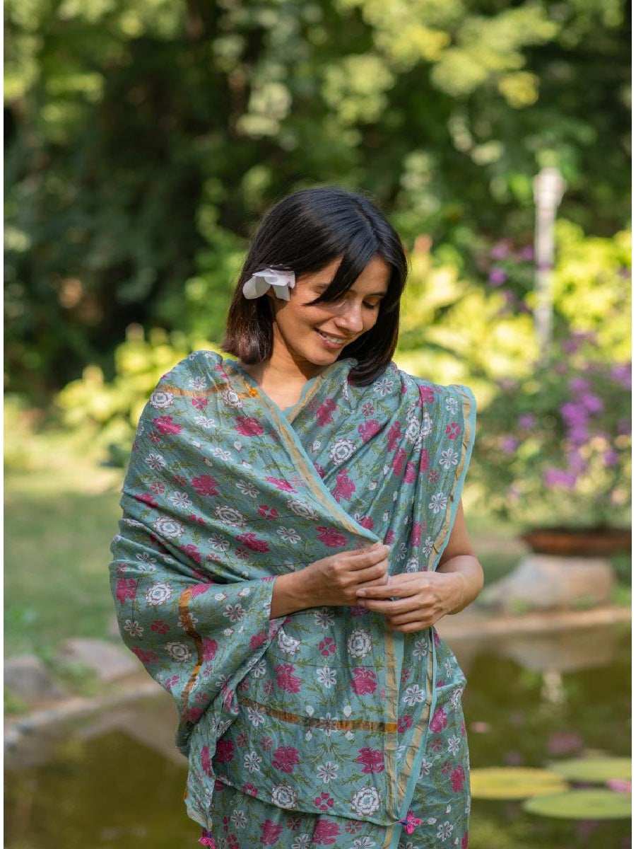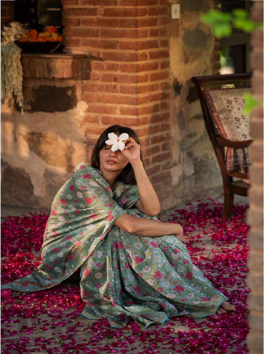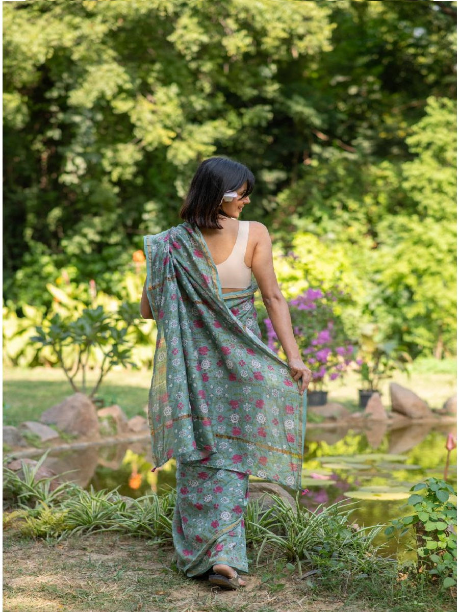 Chanderi Silk Saree : Tara Teal