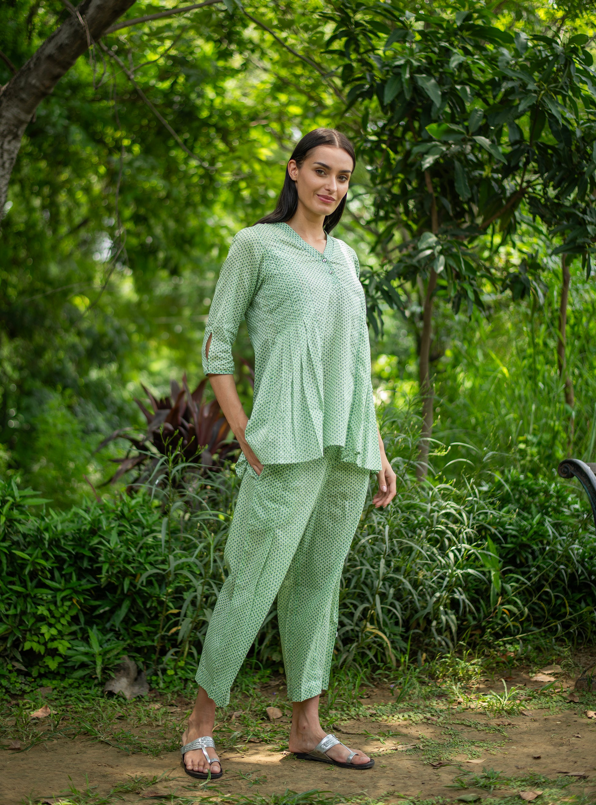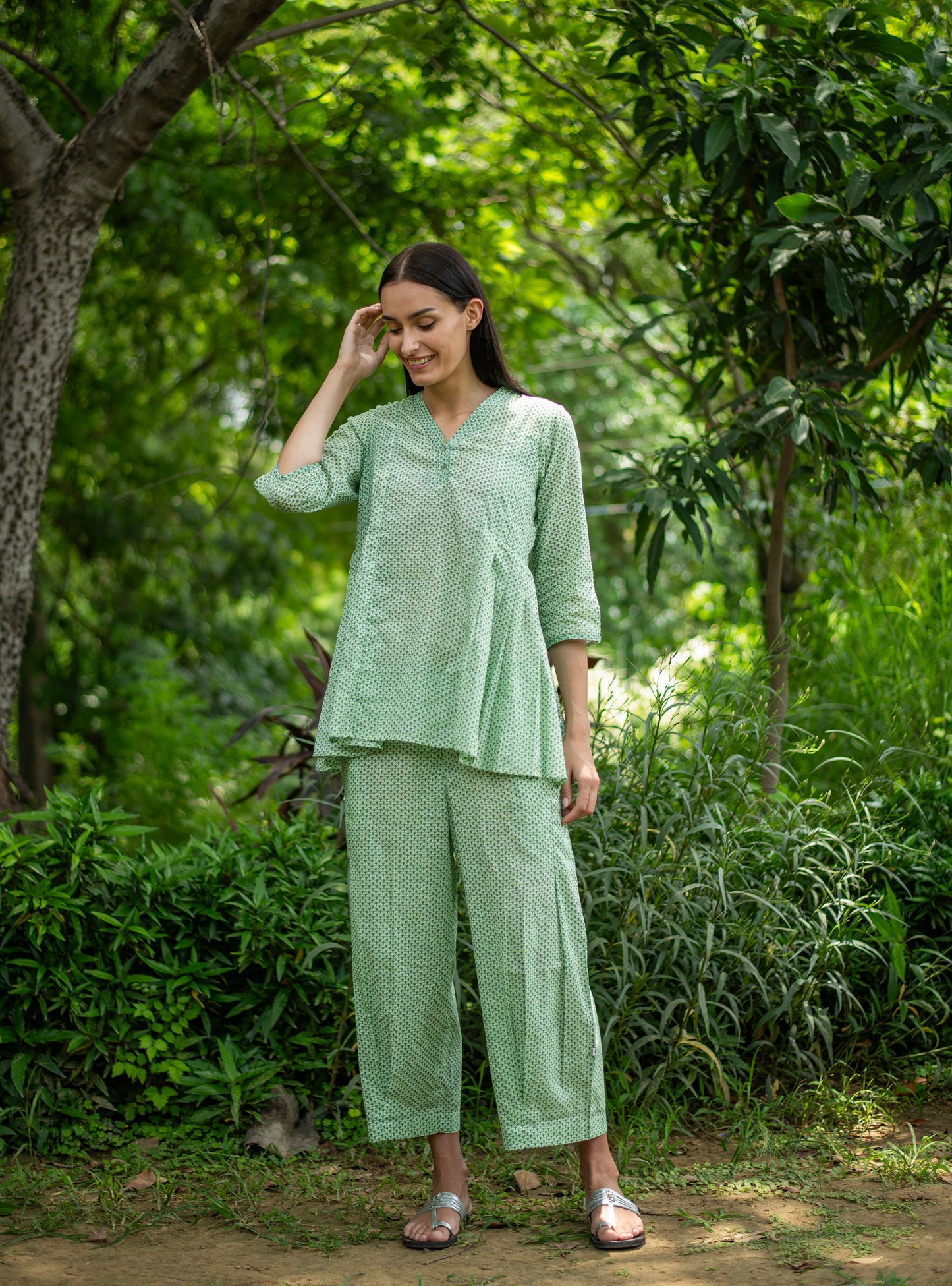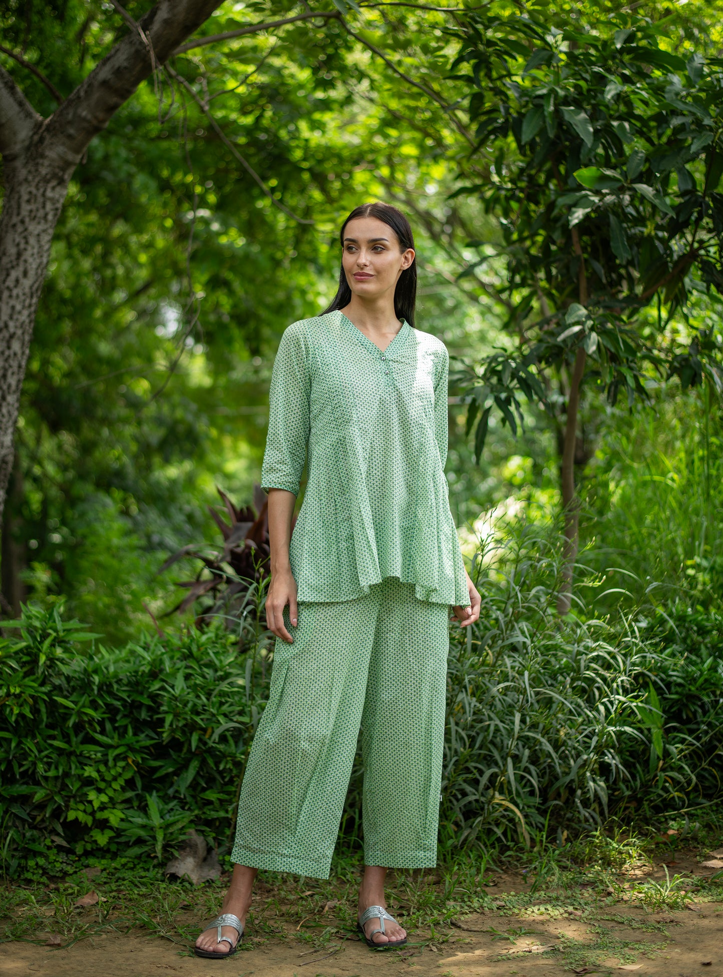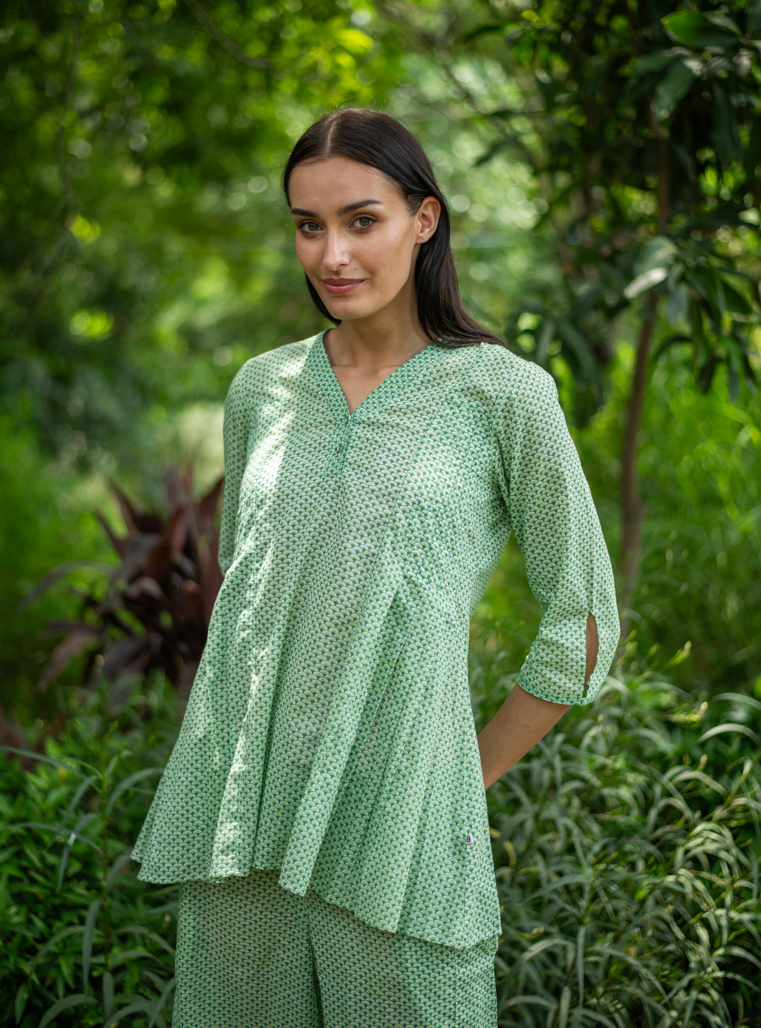 Designed for easy wear for warmer days with a flattering cut, the fit is comfortable and features a scale print that brings a bit of texture to subtle levels. Light colour and tastefully graceful, it's an all-around versatile piece for your wardrobe.