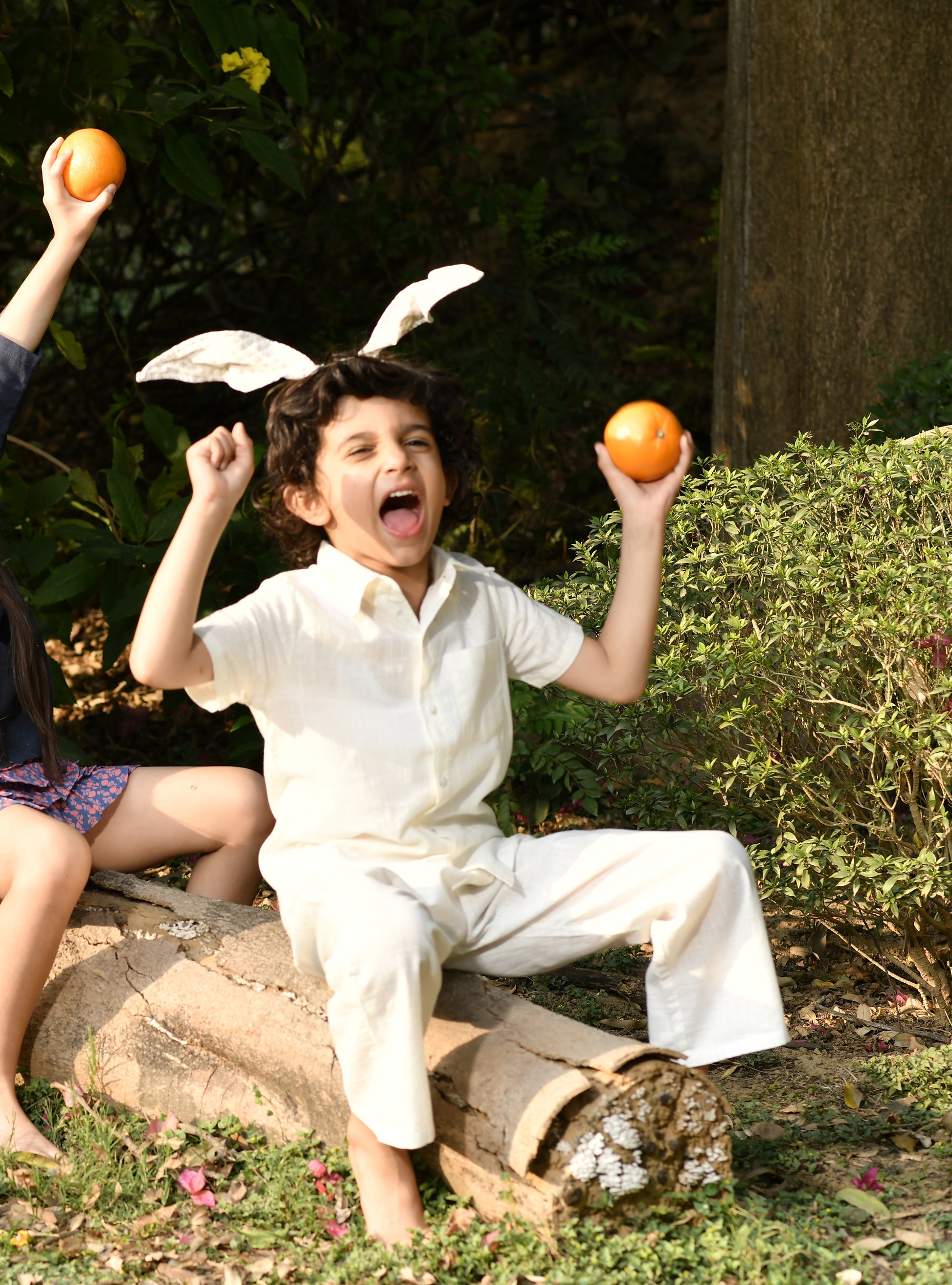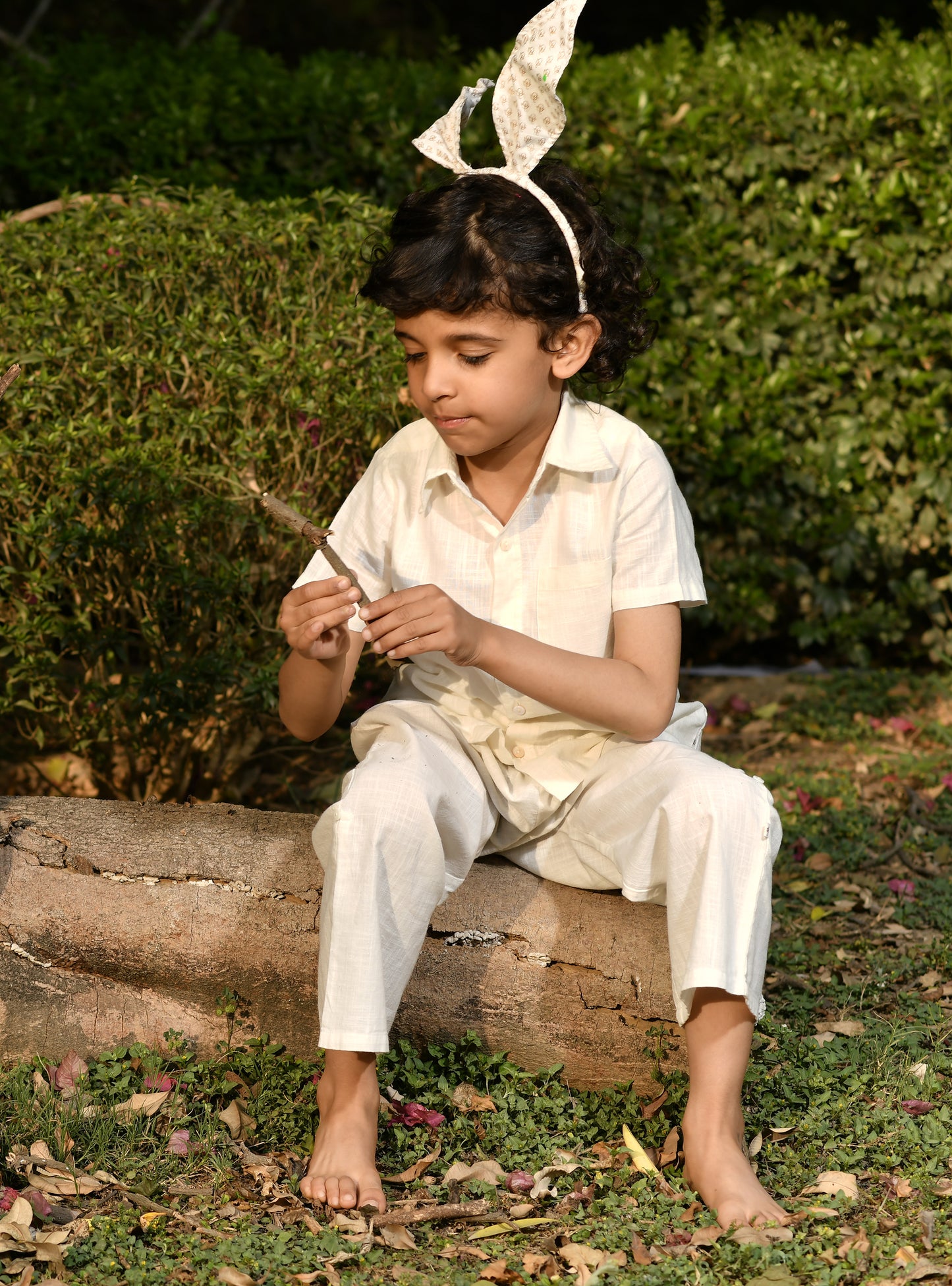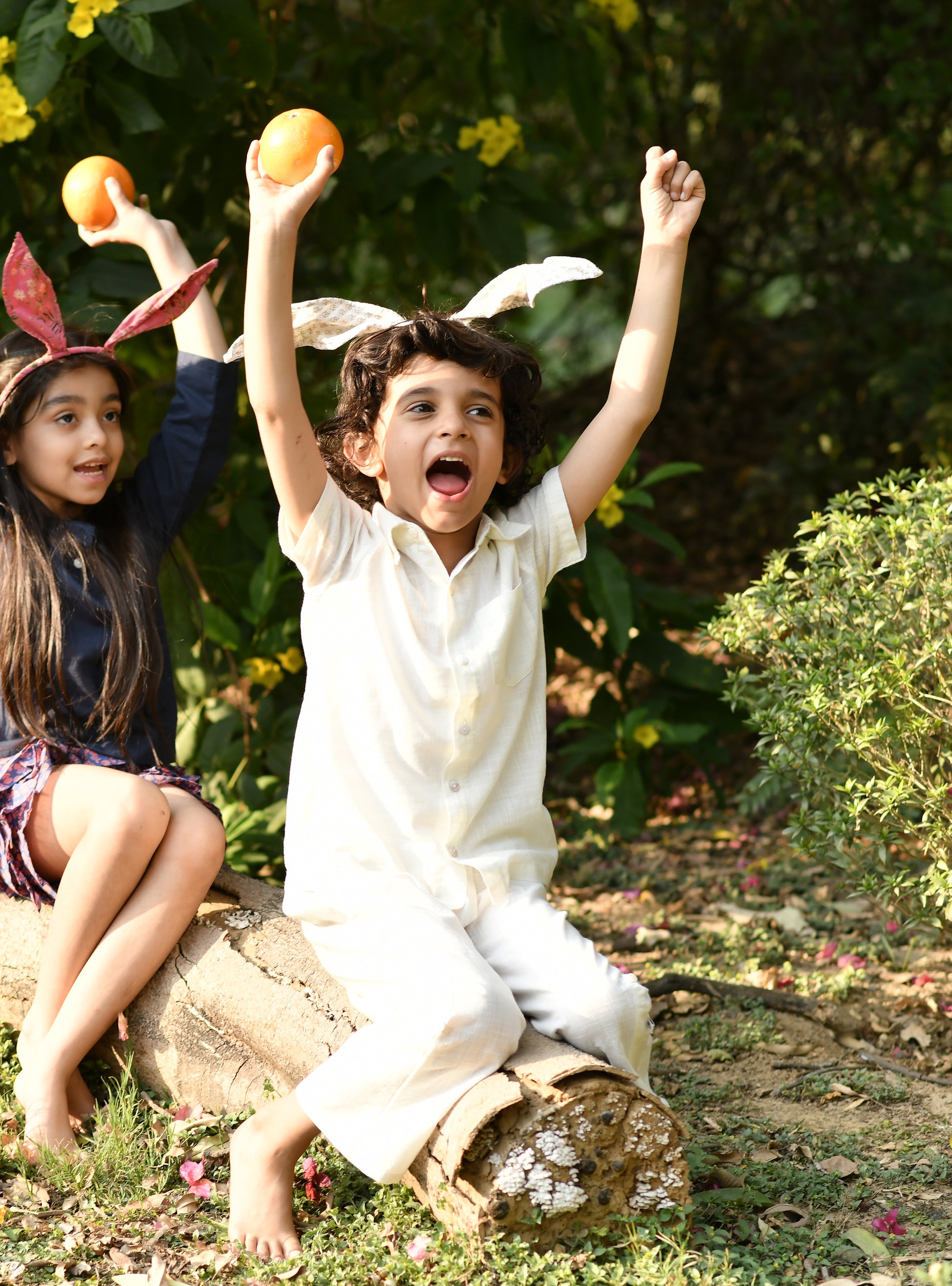 This Kids Angad Half Sleeves Shirt is made of high-quality, durable fabric for extended wear and features a solid white color. Perfect for both casual and formal occasions, this shirt is a versatile addition to any child's wardrobe. Keep your child comfortable and stylish with the Kids Angad Shirt.