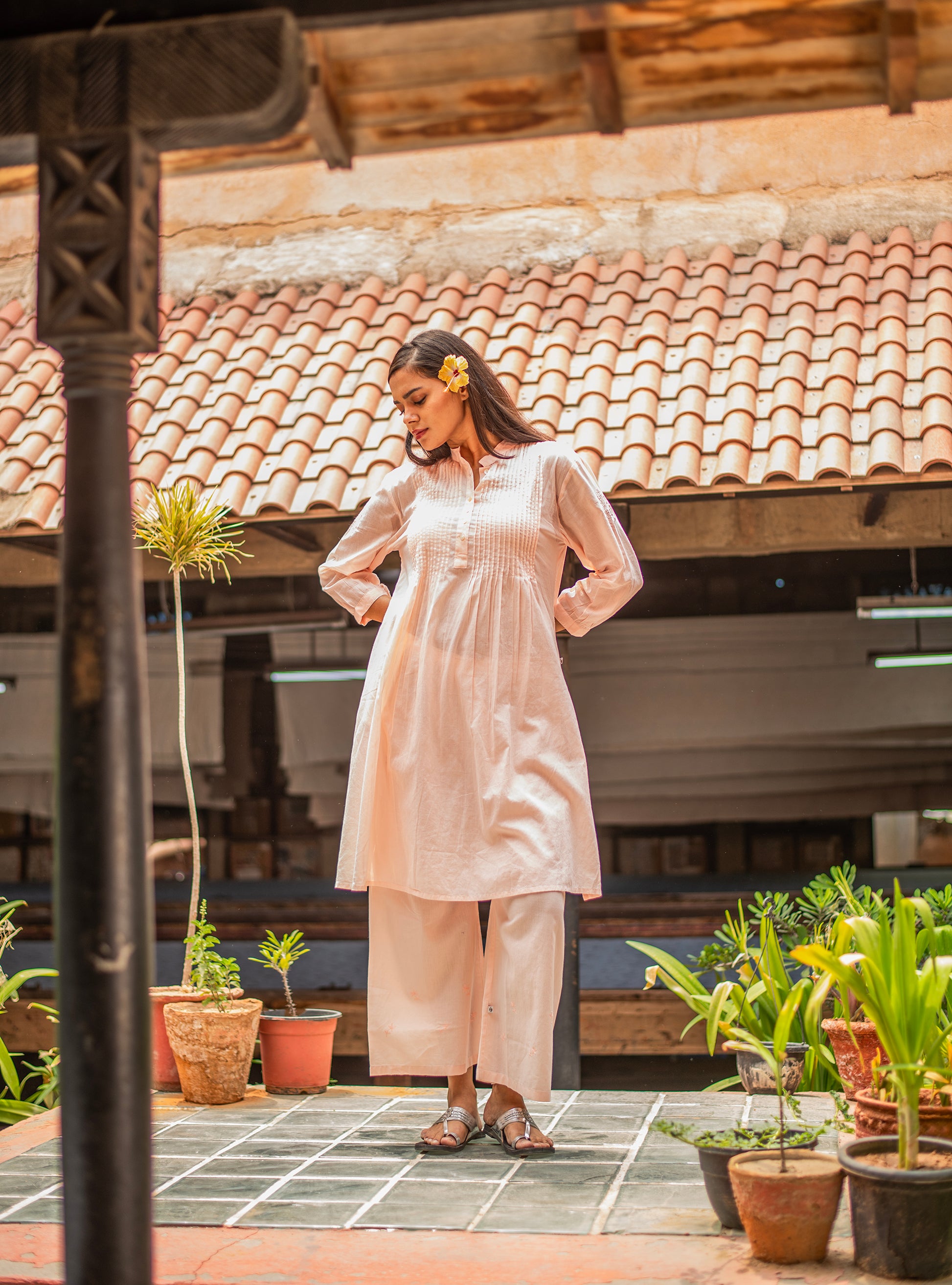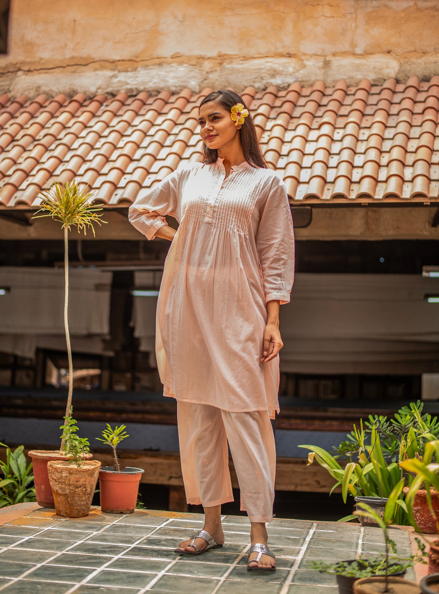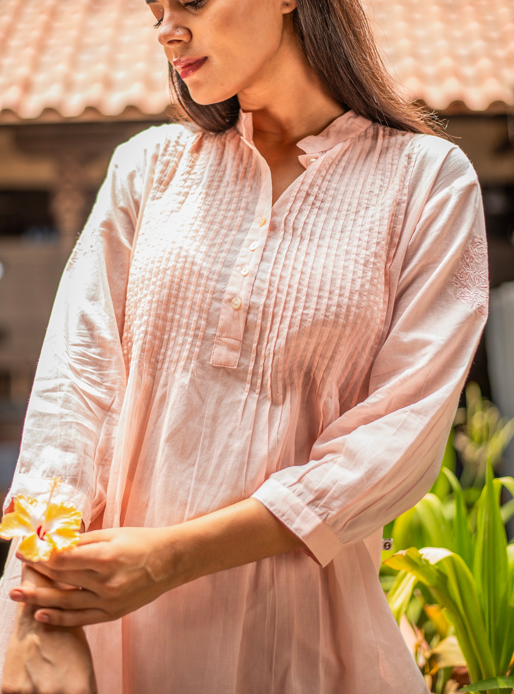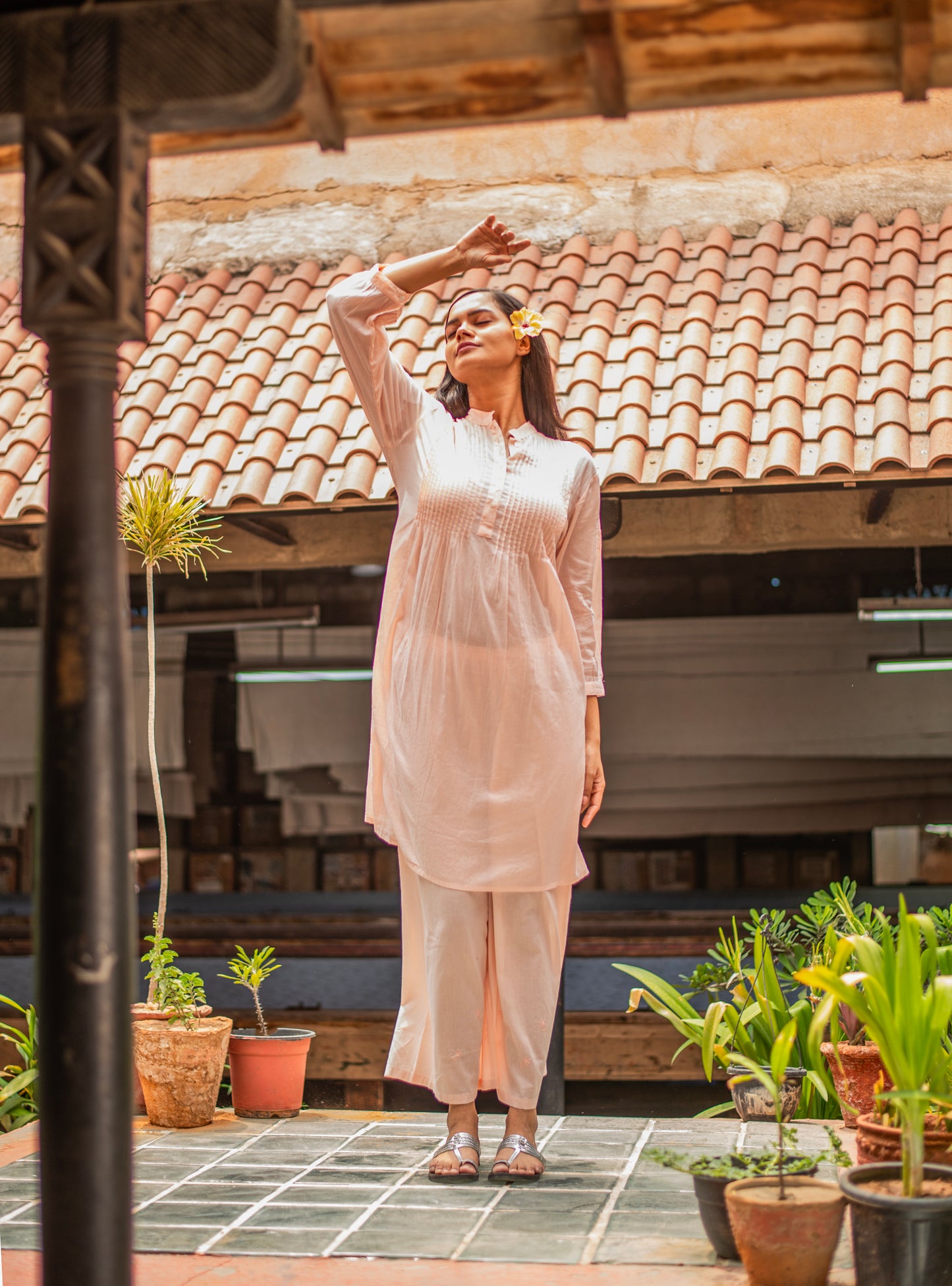 Experience elegance with the Shabnam Kurta crafted from soft peach voile fabric, featuring delicate embroidery that adds subtle sophistication. Its breathable material ensures comfort throughout the day, making it ideal for both casual and semi-formal occasions. This kurta combines traditional charm with modern ease, perfect for those seeking refined style with effortless wearability.