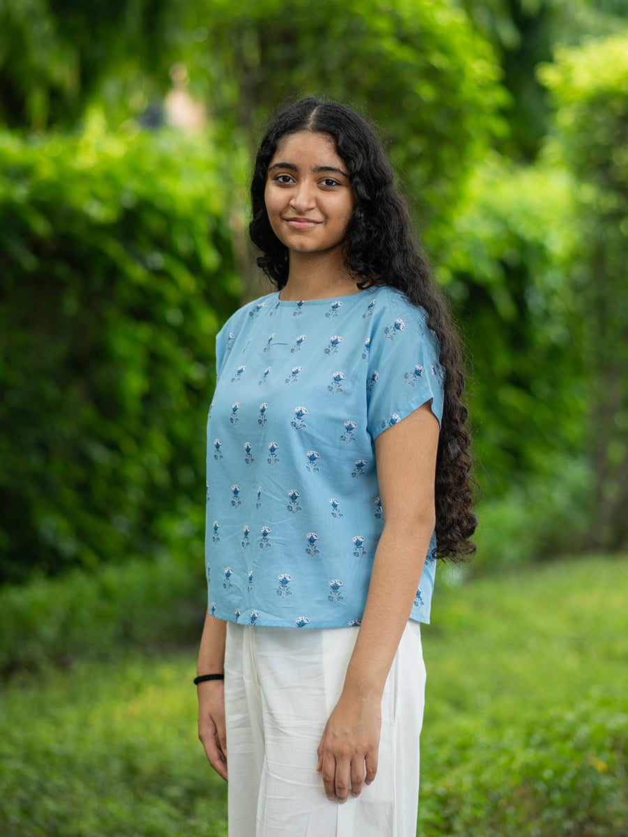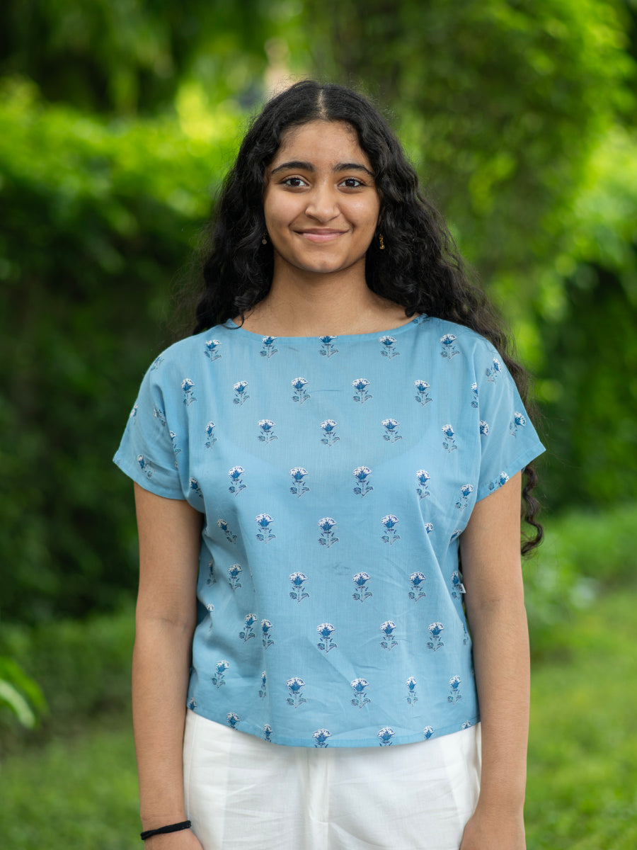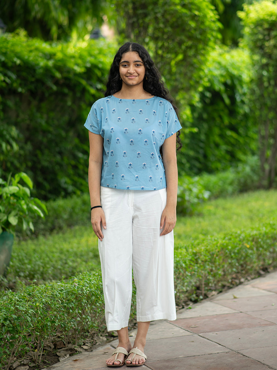 This cotton top redefines casual chic with its modern silhouette and simple design. It comes in many funky colors!