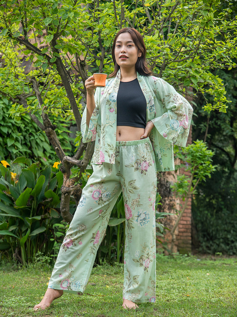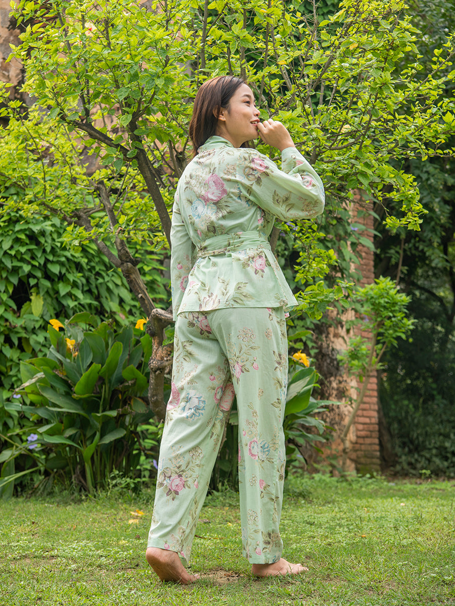 Hop aboard the fun wagon in our cotton voile-printed PJ set! This wardrobe must-have is crafted in soft fabric, ensuring comfort for relaxing or work-from-home moments. Featuring a shirt collar neck topper, a buttoned opening, and a belt it's designed for both proper comfort and a chic lounge-wear aesthetic.